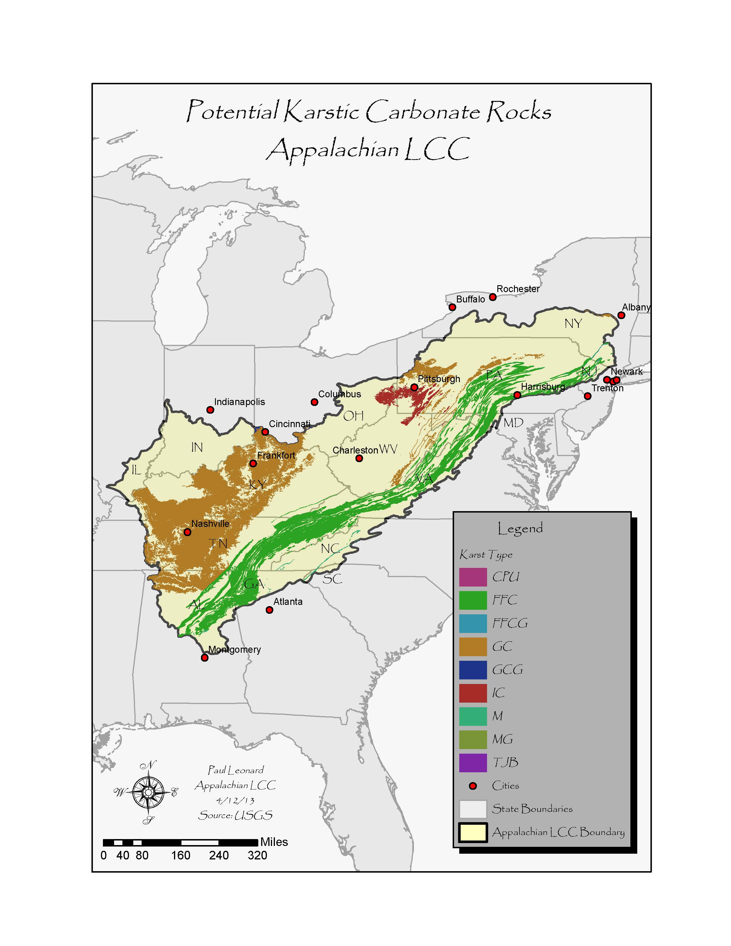 Preliminary Map of Potentially Karstic Carbonate Rocks in the Central and Southern Appalachian States, By D.J. Weary (USGS)pleonard
