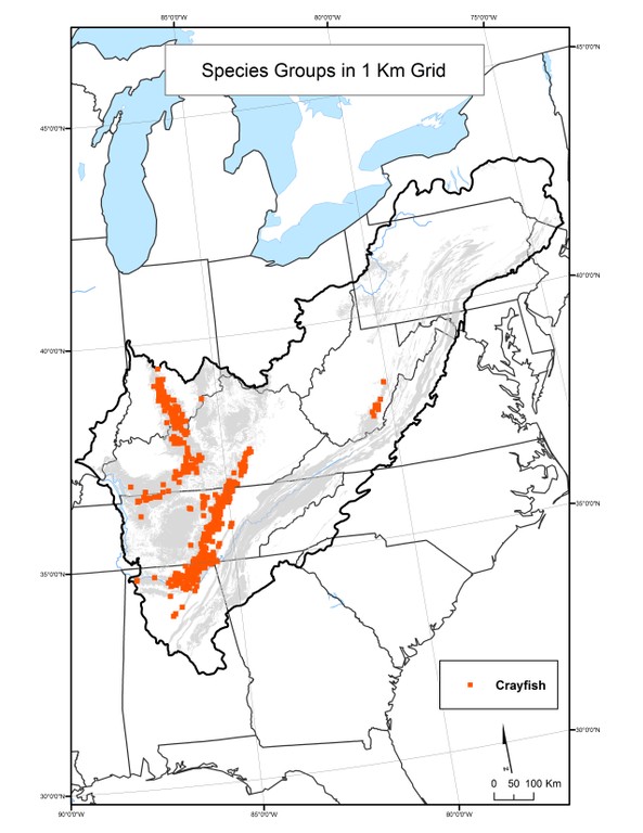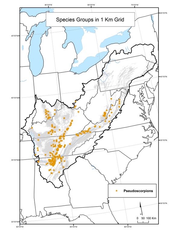 Since there were too many species (710) or even genera (131) to analyze within the scope of this project, a functional ecological approach was utilized. The ranges of nine ecological groups were analyzed, including; predaceous ground beetles, millipedes, pseudoscorpions, springtails, spiders, amphipods, isopods (Asellidae), crayfish, and fish. Collectively, they are the best studied and most abundant stygobionts and troglobionts. Species within each group have very similar ecological roles, so interesting generalities should emerge about the conditions under which they are found. The number of species in each group ranges from 164 (beetles) to four (fish).