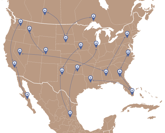 Map of North America showing general idea of connecting anchor sites to corridors.