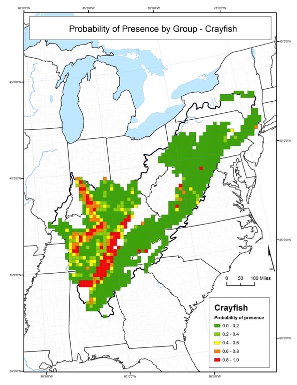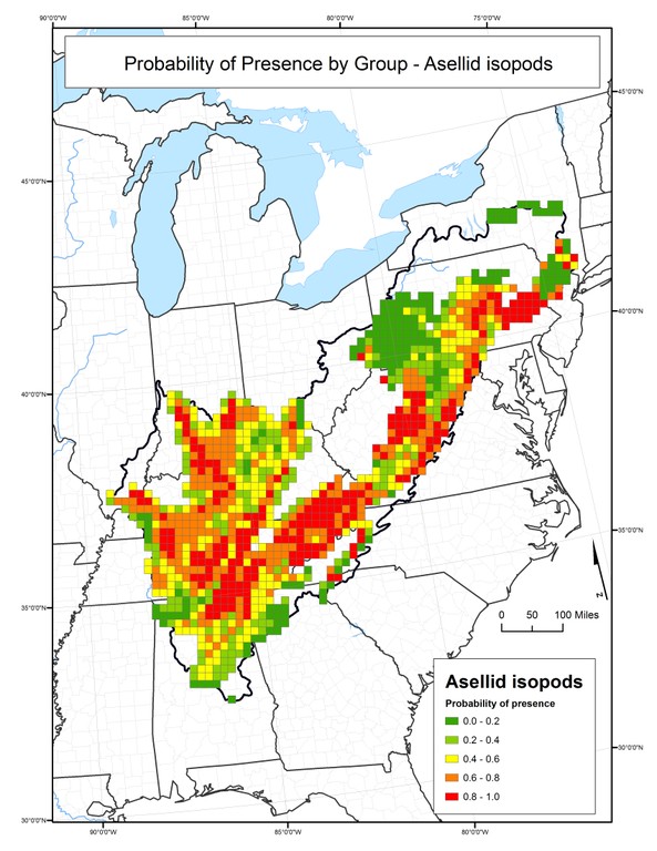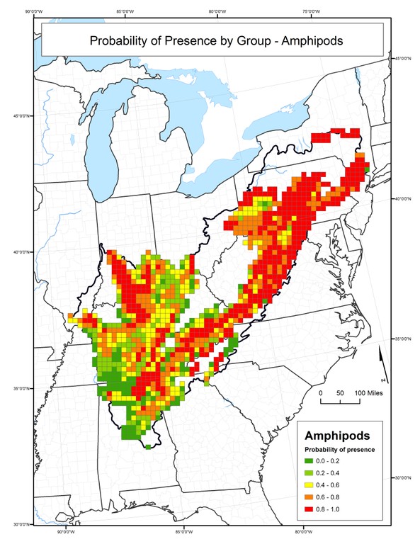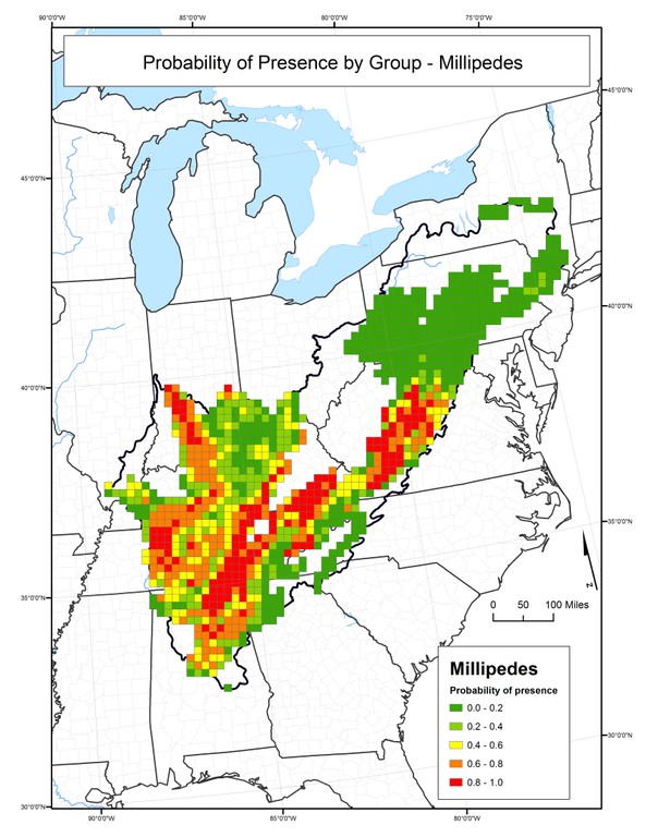 Prediction maps for each of the nine groups. These are potentially important both to predict areas where to find particular groups and to determine regions of overall high habitat quality where species richness is expected to be high.