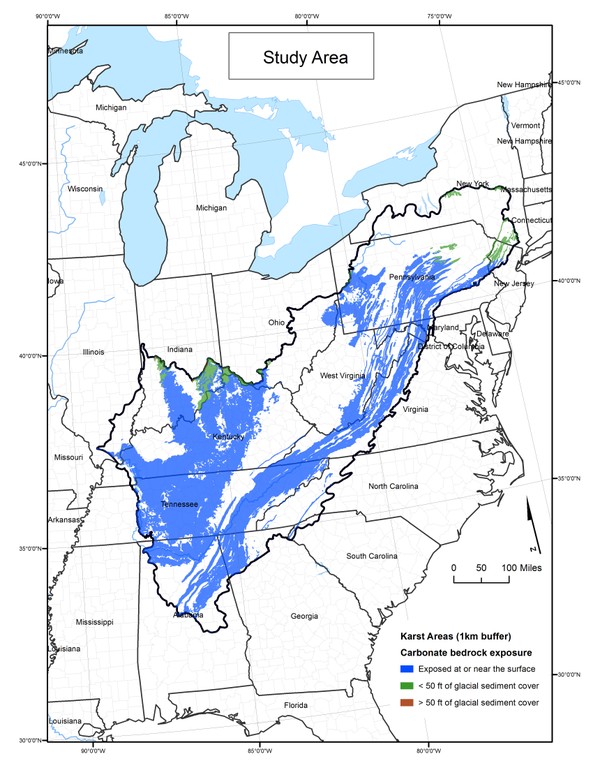 Overview maps for the Classification and Mapping of Cave and Karst Resources within the Appalachian region.